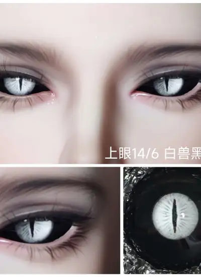 ドール用アイ 樹脂+石膏アイ 【獣瞳】ブラック+ホワイト 10mm/12mm/14mm/16mm/18mm BJD